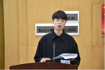 典礼第三项,由来自视觉与媒体设计系的教师代表狄丞发言。在热烈欢迎全体新生加入艺媒大家庭之后,他鞭辟入里地指出了未来艺术的前景,即由物质向精神转变,由实体向虚拟转变,由注重审美向注重体验转变。同时,他也指出时代的变革带来了员工选择的多样化,鼓励新生发展多重身份,进行学科融合,成为未来性人才,并教导新生关注政治生活,培养国际视野,将民族精神融入艺术创作中。