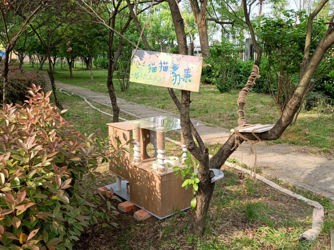 设计理念:为猫猫提供一个短暂休息娱乐、供同学投喂猫猫的场所。