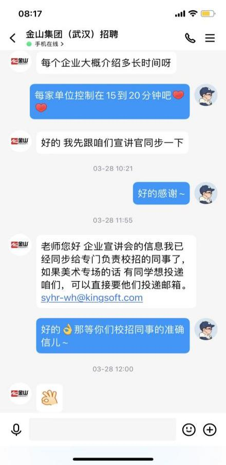此外,公司积极与用人单位保持热切联系,纳入就业联络库,以期为今后常规化招聘工作奠定基础。公司辅导员会将用人单位提供的求职培训、课程教学、实习机会及时转发到员工群,并根据员工的求职状态进行点对点的推送。