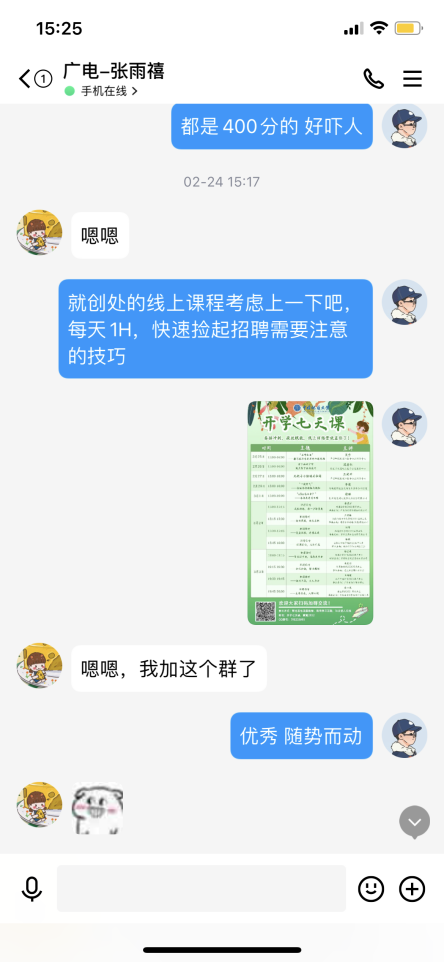 借势公司员工就业指导处举办的“开学七天课”,精准投放信息,号召员工迅速从考研的赛道转向,积极备战春招。目前已有多名员工找到心仪工作,签订三方就业协议。