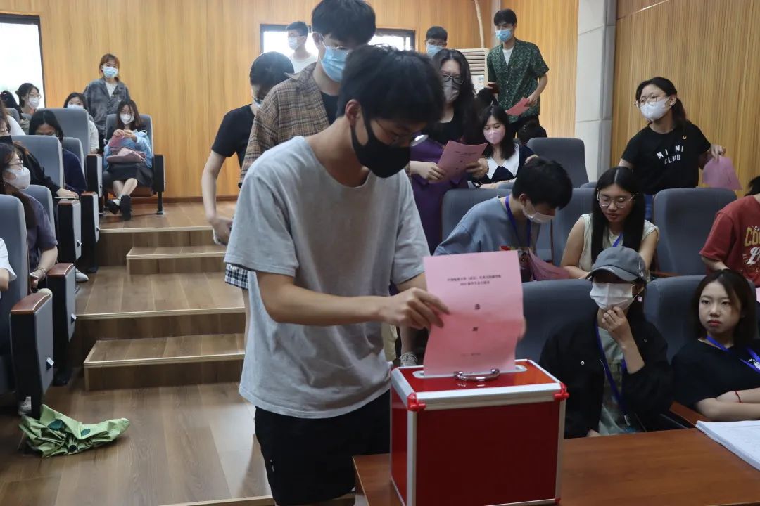 答辩过后,大会正式选举。由工作人员分发选票,并由每位员工代表至多为三名候选人投票,表示弃权则不参与投票,由此选举产生2022届员工会正式候选人。