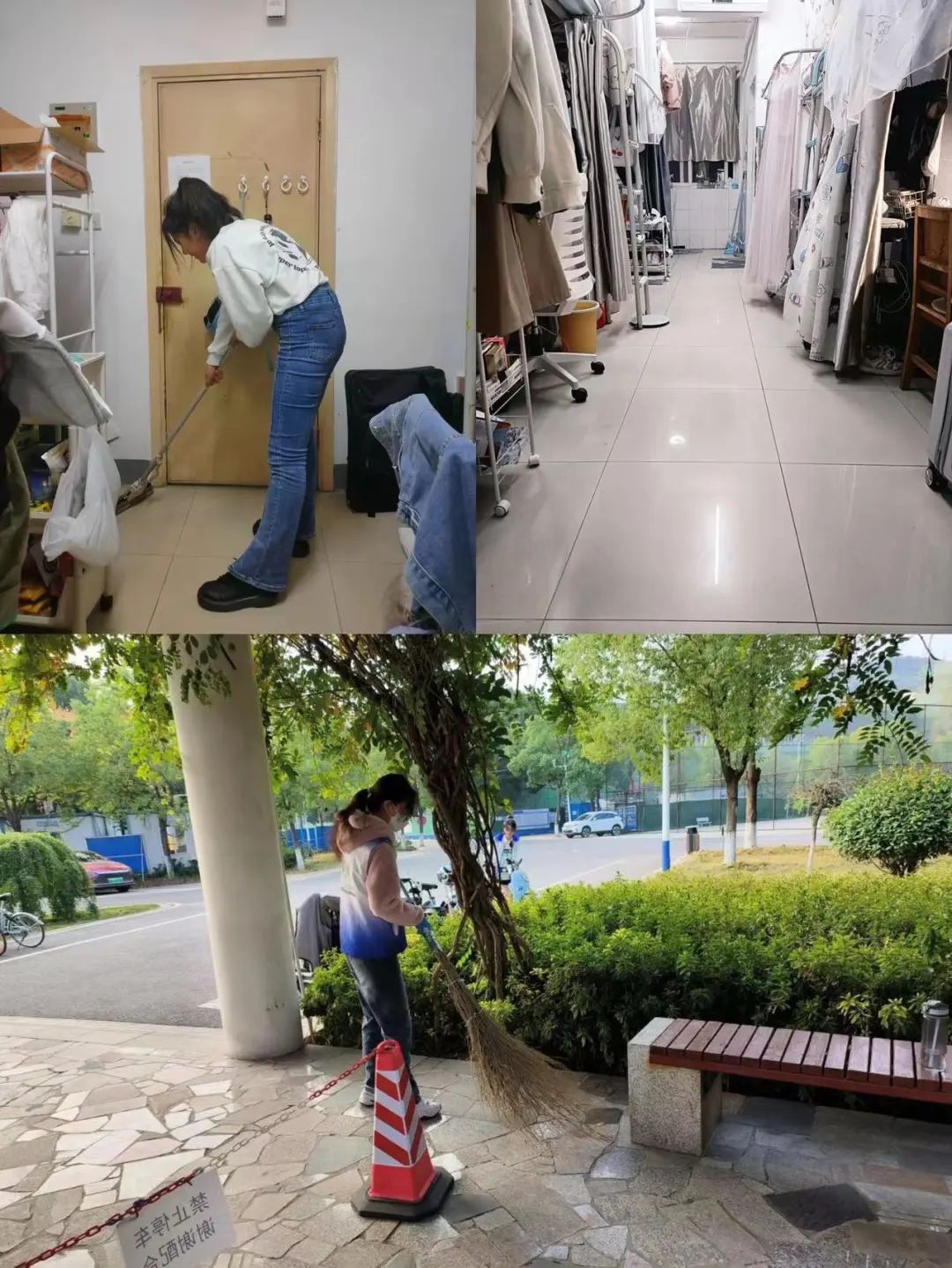 公司教职工和同学们集中对办公区域、员工宿舍、楼梯走廊等进行打扫和清理;公司青年志愿者协会通过招募志愿者,组织开展员工志愿活动,主动对公司展厅、过道、周边绿化带等进行打扫。他们有的手提垃圾袋,清理艺媒楼周边垃圾;有的拿着扫把,清扫道路上的落叶;有的拿着抹布认真打扫办公桌、玻璃和座椅;还有的将共享单车一一摆放整齐,确保人人行动起来、宿舍整洁起来、公司干净起来。