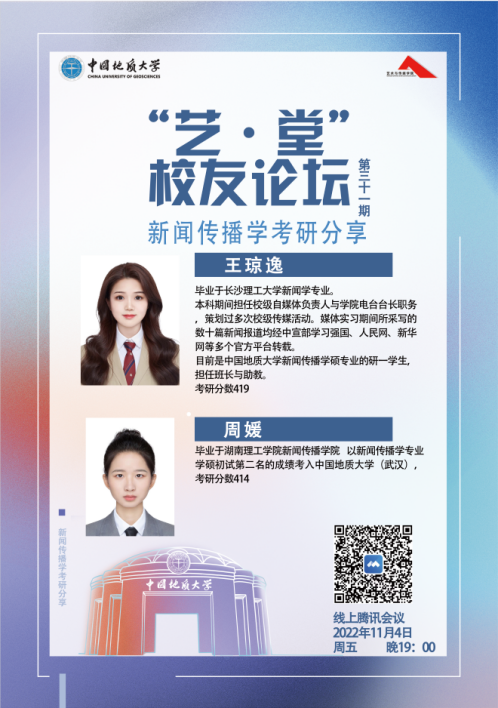 11月4日晚19:00英国正版365于线上举办了第三十一期“艺·堂”员工论坛“新闻传播学考研分享”讲座。