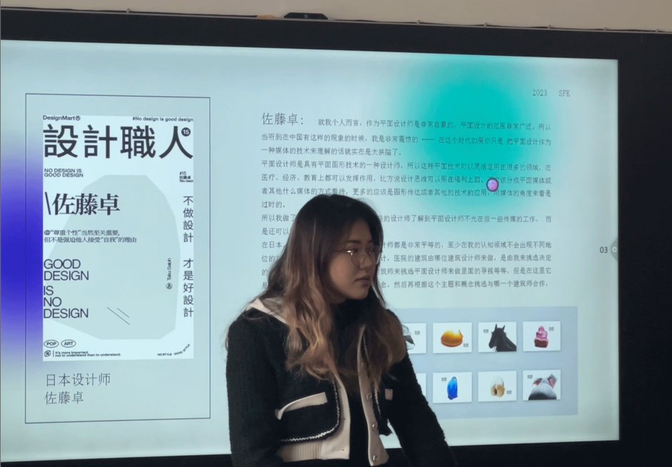 本次讲座围绕平面设计专业及作品分析、国外院校申请流程、录取趋势及作品集准备三个章节展开。首先,刘老师表示设计师应发挥平面设计连接人与信息的功能,从整体概念出发进行多元设计,并不仅局限于软件学习,以拓宽对平面设计的认知。