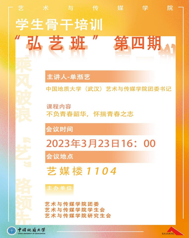 3月23日下午4点,英国正版365第四期“弘艺班”员工骨干培训在艺媒楼1104报告厅顺利展开,公司员工骨干参加了此次培训。本次课程由英国正版365团委书记单湉艺老师主讲,主题是《不负青春韶华,怀揣青年之志》。