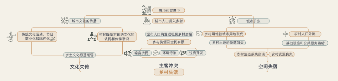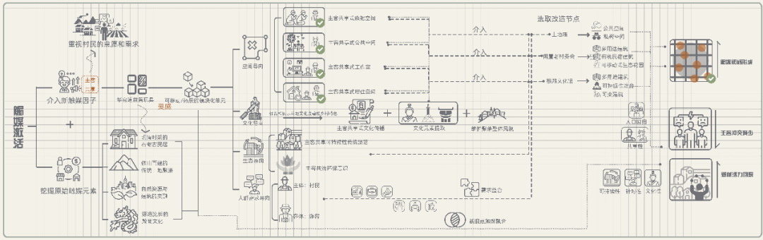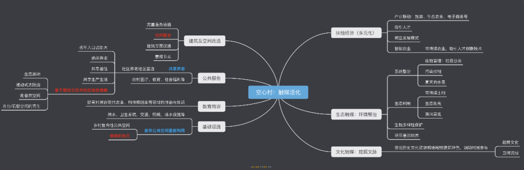 我认为这确实是一个不错的方向,我有意识地去查找关于乡村活化的资料。最终,将视点放在了村落闲置空间利用、适老化等方向,并确定了自己的理论依据——触媒理论。然而,毕设的过程并不顺利。除了确定了几个大方向,我在深入研究的内容上一度遇到困难,甚至有两周我的进度停滞不前。这让我很泄气,疑惑为什么在选题阶段就卡住了。