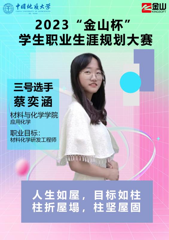 凭借着对结构化学产生兴趣,材料与化学公司2022级本科生蔡奕涵将料化学研发工程师作为职业目标。她认为自己未来会成为一名研究生,通过不断积累基础知识、加强实践能力来达到自己的理想职业目标,基于此蔡奕涵同学对自己的学习生涯制定了十分详细的规划,相信能够为成为高精尖的科研型人才打下坚实的学科基础。