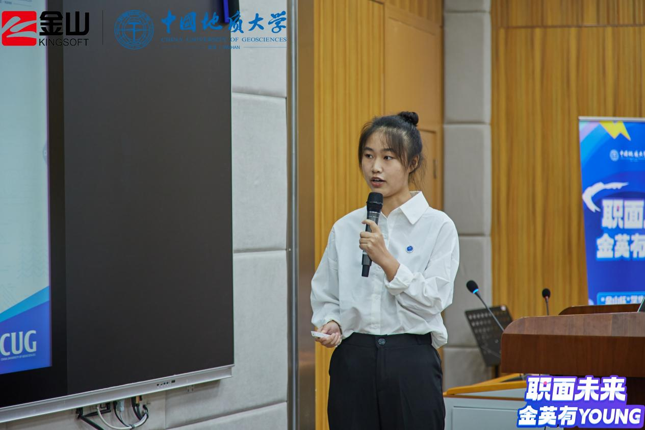 活动伊始,金山集团武汉总部招聘经理徐霞为同学们介绍了金山集团的业务构成与主要产品,预热了赛场气氛。随后,比赛正式开始。七位决赛入围选手依据赛前抽签顺序依次进行答辩,在个人陈述阶段,选手们从生涯故事、个人和职业探索、目标设定、行动计划等方面从不同专业角度出发展示了他们的职业生涯规划;在评委提问环节中,选手们积极回答现场评委老师的问题,互动十分精彩。