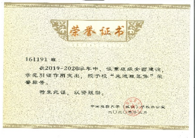 四年来,161191班委们始终秉承"以人为本,以班为纲"的治班理念,坚持以它作为班级管理的指导思想。班干部均能以全责为己任,密切协作,不仅按要求完成了公司、分院系安排的各项任务,而且能够创造性的开展富有特色的活动。班委会工作最大的特点就是有计划,有制度,有总结。本科四年,161191班获得了2019-2020学年优秀班集体标兵、校级“五四红旗团支部”、2021年度校级先进班集体标兵等荣誉称号。