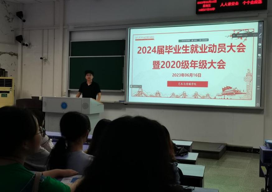 2023年6月16日下午14:30,2020级年级大会暨2024届毕业生就业动员大会在南望山校区教三楼207教室顺利召开。参加此次大会的有辅导员单湉艺老师、陈习良老师及2020级全体本科生。此次大会由陈习良老师主持,旨在加强员工对毕业学年的重视,提高员工对就业形势与政策的了解。