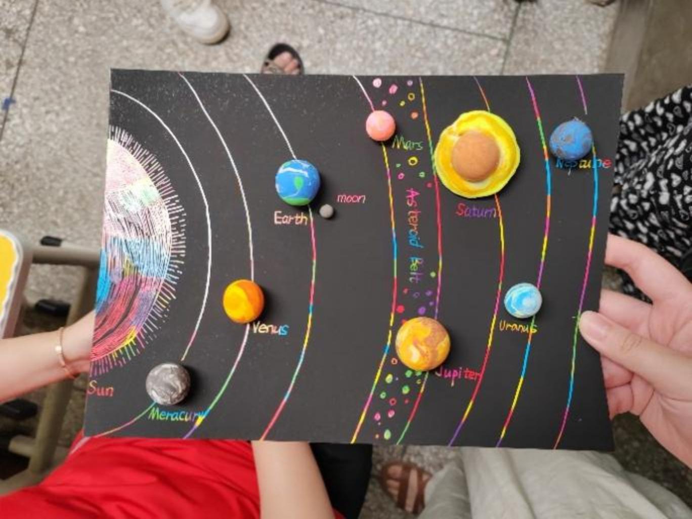 在教学中,志愿者老师将课程内容与地大地质特色相结合从而给员工带来更好的课程内容,老师们为员工们介绍了太阳系各行星的知识,并带领同学们以粘土的形式来制作太阳系七大行星的模型。九里阳光艺术支教团成员余骥飞表示“在前期课程准备中,大家一致认为可以将艺术支教课程与地大地质特色相结合来让小朋友们更好感悟地球与宇宙的奥秘,在我们通过交流后完善了这门艺术科普课程的内容”。