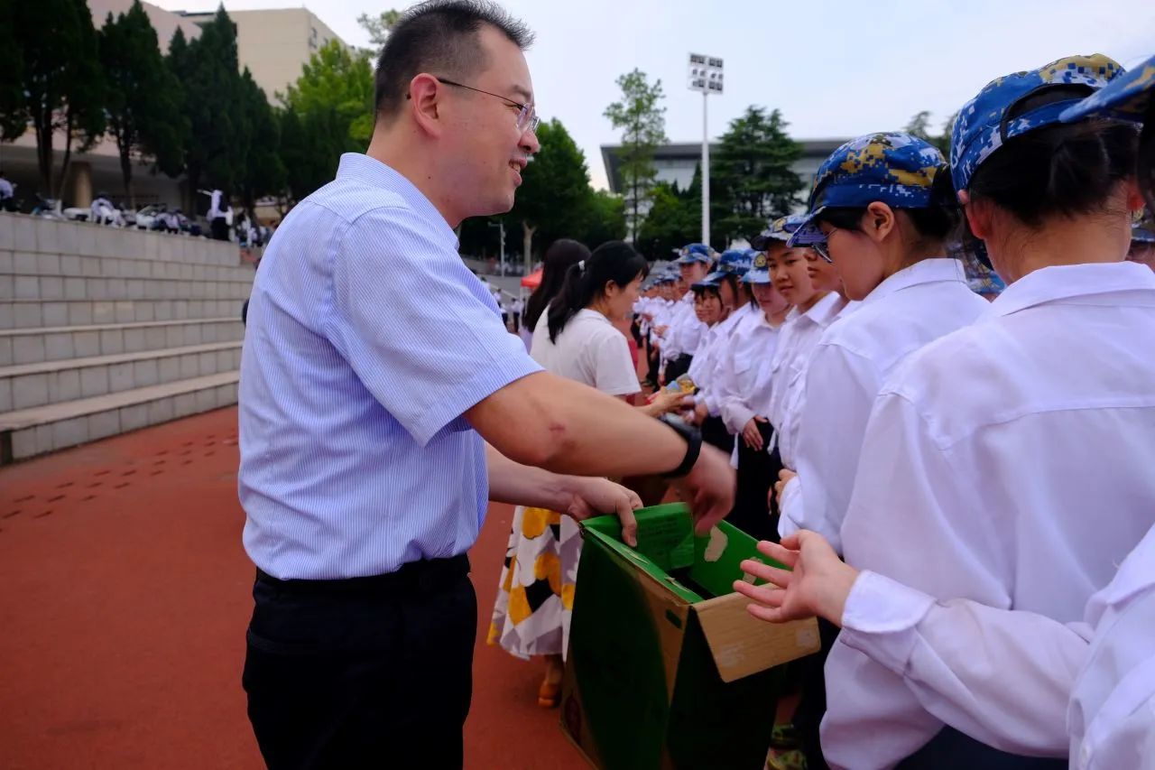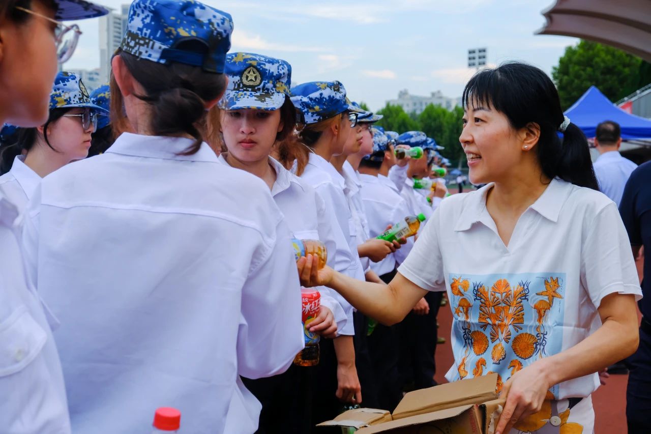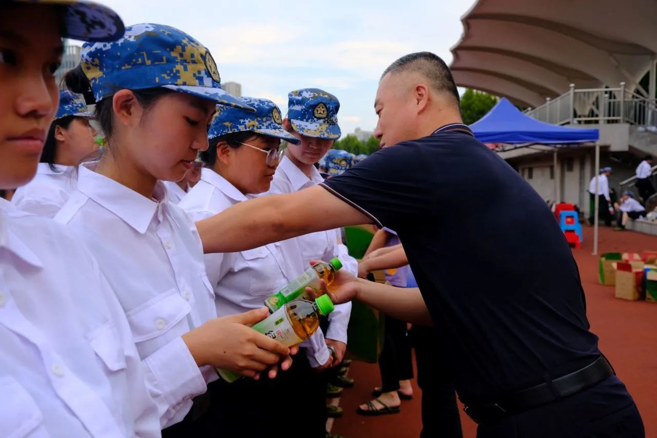 晋书记代表公司为同学们送上公司为大家准备的饮料。天气炎热,希望能为同学们带来一点清凉。晋书记聊起自己当年的军训时光,军训虽苦,但却是同学们迈入大学的第一课。他鼓励同学们要迎难而上,希望此次军训能为同学们的老员工活打下良好的基础。希望大家在军事训练中取得自己最得意的成绩!