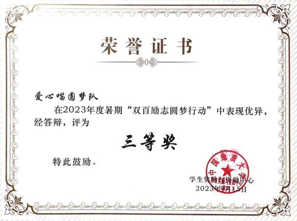 此外,郭嘉鑫、张婷婷同学还参加了“双百励志圆梦行”活动,她们走访了辽宁、孝感多地,为经济困难生送去温暖,带去公司的关怀,进一步提高了公司精细服务,精心育人的水平。