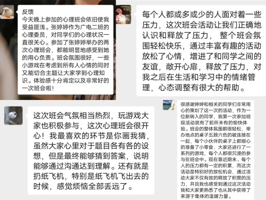 大二下学期召开了以《让我们对“精神内耗”say goodbye》为主题的心理班会,旨在帮助同学们放松身心,促进同学们形成健康的人格,养成良好的心理素质。通过这次班会,让同学们更加深入地了解了“情绪内耗”的概念,明确自己的情绪问题,掌握有效的情绪管理方法,并在轻松愉快的氛围中增强情绪素质。
