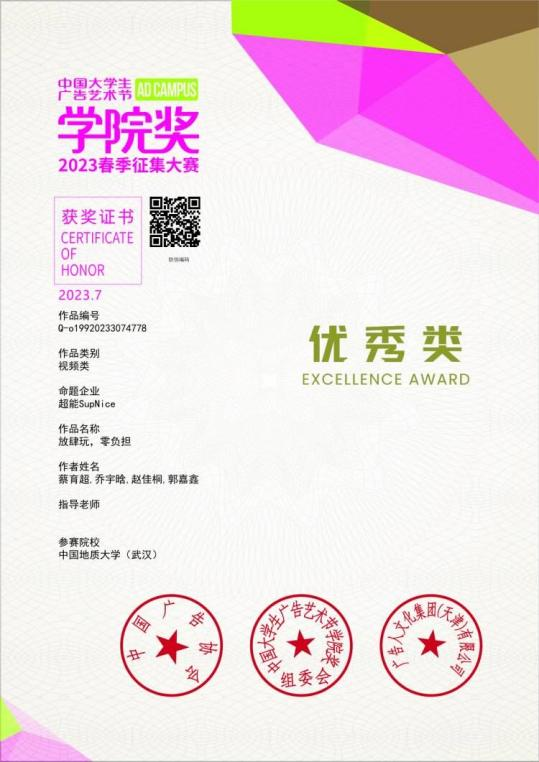 依托公司公司创新平台,我们积极创新拼搏进取,在大创、挑战杯、大广赛等多个专业比赛中砥砺向前。郭嘉鑫参与了老员工创新创业项目,并完成了大创校级结题,她在中国老员工广告艺术节2023春季征集大赛的作品,被评为公司优秀类作品;张婷婷同学参加的第十四届“挑战杯”红色专项比赛的作品,被推送至国赛组委会;邓语晨同学参加了2022年湖北省老员工文化创意作品大赛并获得三等奖。