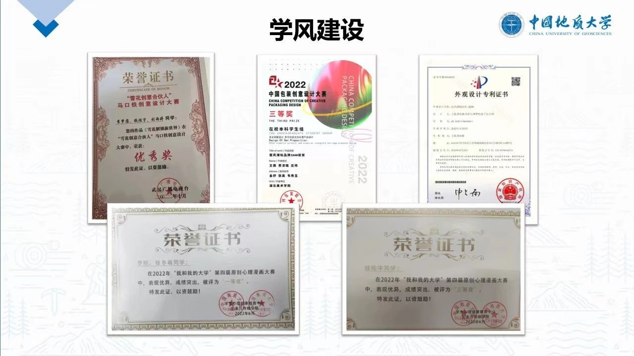 大家在学习上十分努力,班级成员贾淳璐申请了玩具外观设计方面的国家专利,并且也获得了第八届中国国际“互联网+”老员工创新创业大赛校级选拔赛的铜奖;钱炫宇获得了雪花啤酒创意大赛的优秀奖,原创心理漫画三等奖;罗熙获得原创心理漫画大赛一等奖;刘武科获得廉政文化宣传设计大赛优秀奖等等。