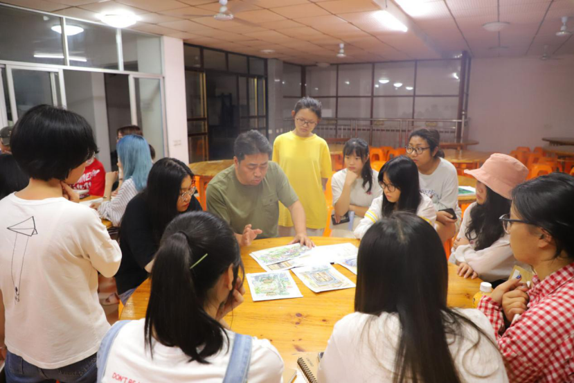 2019年7月9日至7月10日,视觉传达设计专业的员工在沱川乡周边进行写生实习。9日当晚,员工集中分为四组,首先由四位指导老师分别对他们的作品进行点评。然后,郑立波老师给同学们讲解作画重点,绘画质量和要求,并布置第二天参观篁岭的具体事项。最后,杨经理着重强调了安全的重要性,希望同学们在写生时,要相互关心、相互帮助,任何时候都要把安全放在第一位。